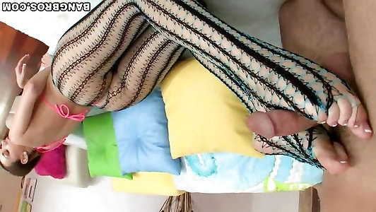 Ultra-kinky dark-haired Allie big cock really hurt is having fun time giving her paramour a uber-cute footjob