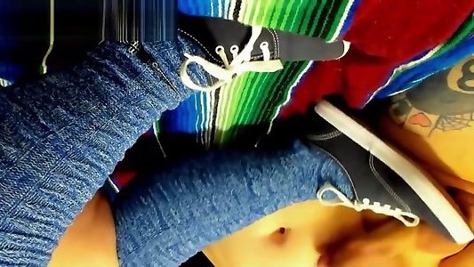 Cumshot on gay suck chem Sneakers and Blue Knee High Socks