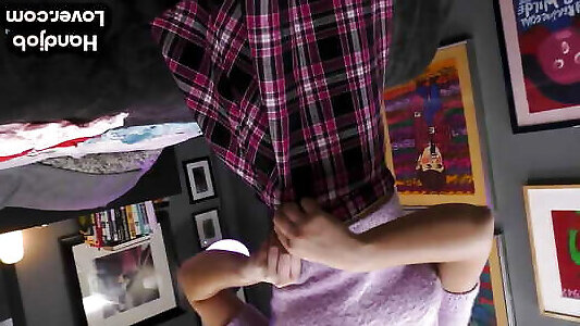 HJ POV GF stroking cock of panty fetish BF in closeup