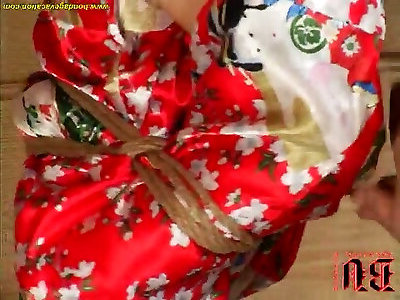Puny white milf with lengthy gams in Japanese style restrain bondage