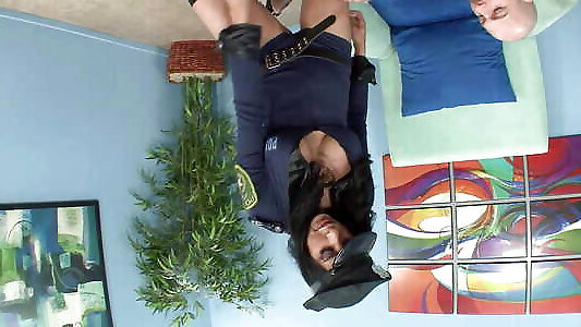 Babe in glasses female kidnapping Channing flashes her mounds and gives a yum-yum fellatio