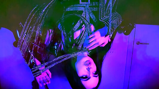 Pet Play with Heavy Rubber Fetish. Shiny Mistress in Latex Catsuit and Her Submissive. Positive Femdom.