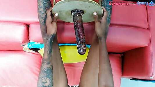 Dark skinned meaty bum lesbos pummel each other and sploog in the process of it