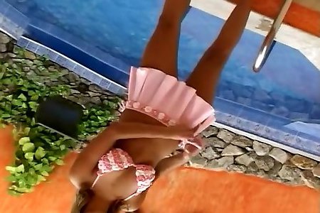 Wonderful fit double fingle on bathing suit shaking her fat arse and mighty gams