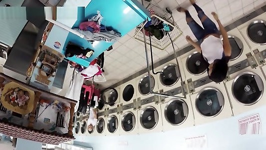Small brunette deepthroats a hefty man rod and gets boinked at the laundromat
