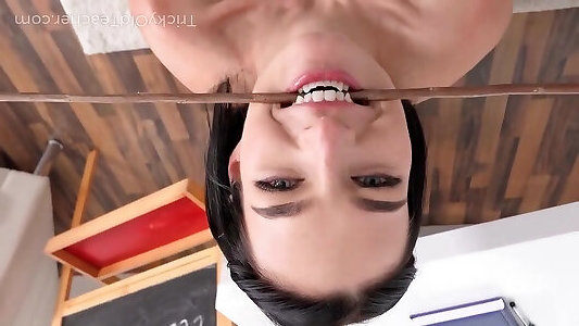 Teenie Stacey girl shit in boy mouth gets pummeled hard