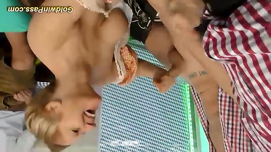 Thin Doll Victoria Pure at Internal Cumshot Gang-fuck Party – German