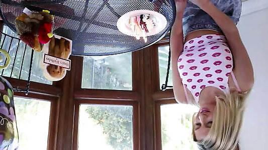 Teen Abbie Anderson and Angela Attison have girl-on-girl fuck-a-thon