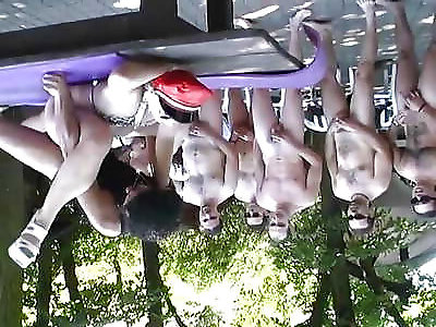 Having an outdoor yoga cheet with woman with the lesbian dark haired excites the blondie who wants to examine by frigging