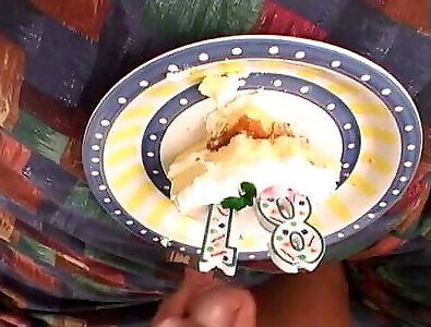 She enjoys licking jizm off cake after thick fuck-stick packs up her smooth-shaven twat rock-hard
