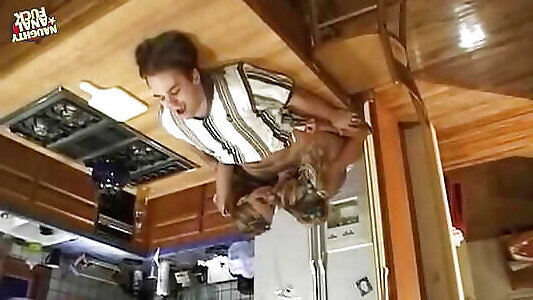 One Lucky Guy Gets to Have Anal Sex with Two Green Blondes in the Kitchen