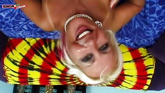 Kinky blondie with gigantic sneak in friend mom room jacking solo