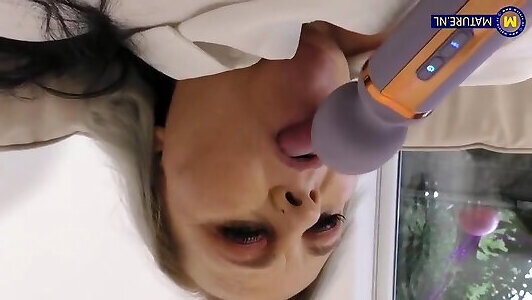stepmom jerks off her stepson, spilling his cum on her wet pussy&039;s face