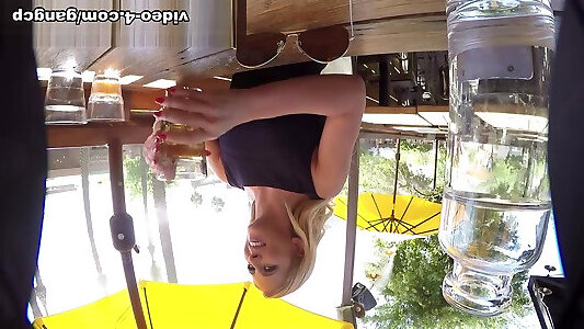 Fantastic threesome with squirting Italian blonde deepthroating two dongs and screwing in both holes