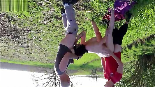 German Naturism Mature Entice to Plumb by two Stranger Public