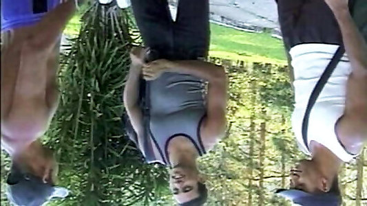 Slutty Brunette Lets the Two Men Spank Her Body Relentlessly and Pound Her Ass Outdoors