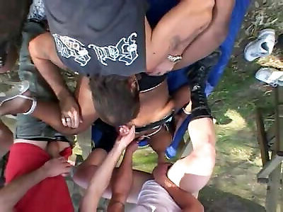 Bodacious ebony stunner runs into a gang of white insane dudes