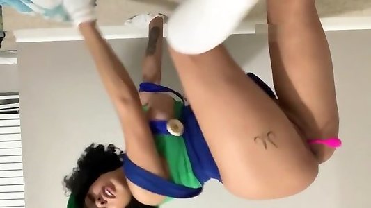Latina spunks hard with Rectal Beads LUIGI HALLOWEEN COSTUME