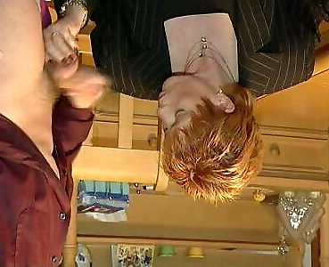 I&039;m sitting on a chair and my mother-in-law is giving me a deep blowjob and jerking off to a cumshot