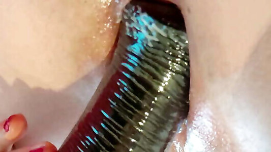 Close-UP Labia Pumped Big Black Cock Dildo Milf