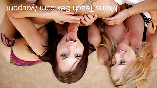 Busty milf teaching adorable teenage to bang and take jizm shot