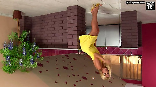 Astonishing towheaded stunner Sophie Moone performs an extraordinaire solo action