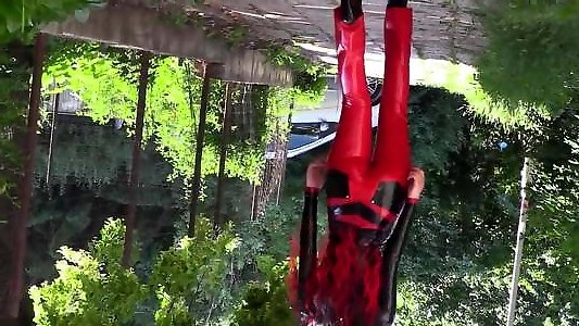 Hanna and Nymph Morgana slap marionette Joschi outdoors