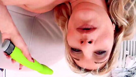 A sexy and horny blonde lady from Germany pleasing her wet muff