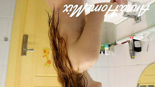 Stepmother allowed sonny to observe how she cleans her teeth nude and shaves her armpits.