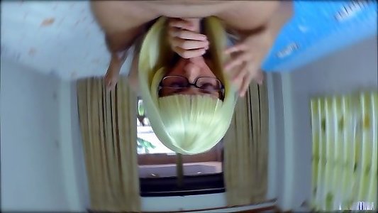 The neighbor is waiting for me at her house to give me a blowjob and fuck her on the kitchen counter in a green dress
