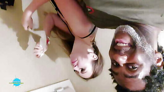 Nemo Dark-skinned shoots his fountain all over Stylish Mud&039;s boobies