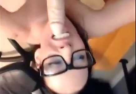 Spear thirsty dweeb in glasses deep throats a instrument vigorously for spear cream