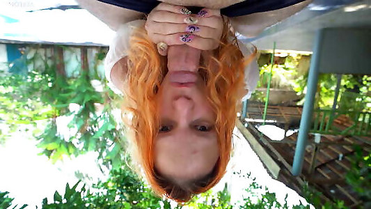 Huge titted VividRedHead gets bra-less on penthouse terrace