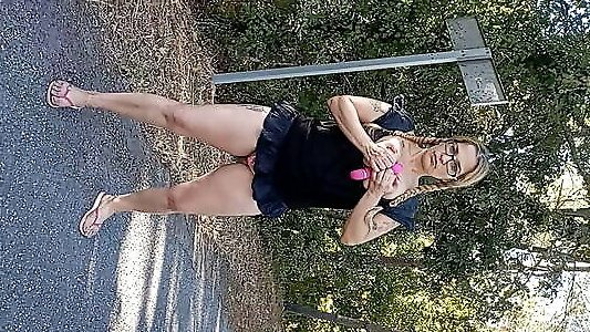 Nubile superslut wanks outdoors hoisting her miniskirt
