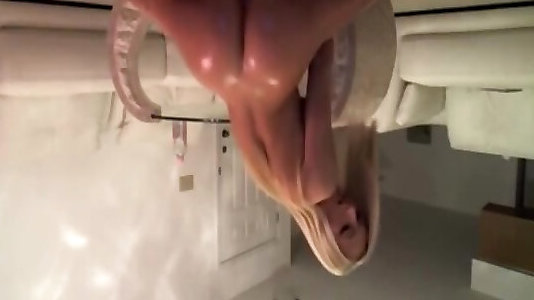 Cute booty unexperienced oils herself before sliding a fuck-stick up her coochie