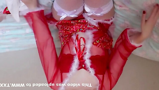 On The Mischievous List - Teenie Christmas Striptease And Jacking To Ejaculation