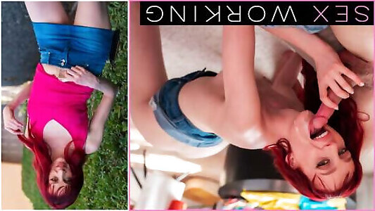 Petite redhead street MILF hired by smell obsessed nerd for pussy licking and hardcore sex