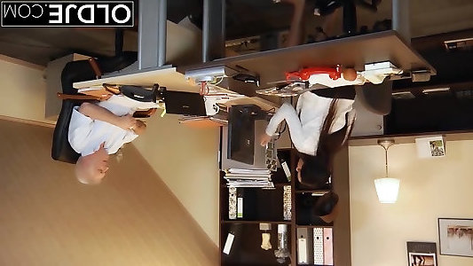 Huge-chested teenie chick seducing timid aged coworker for romp affair
