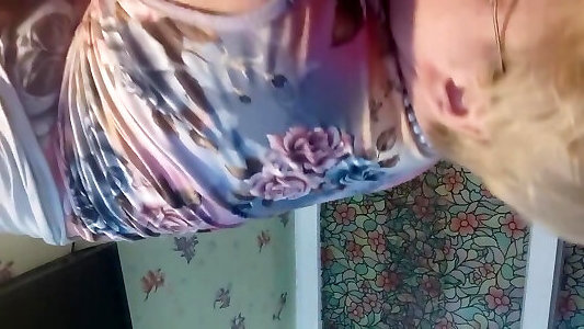 Blonde Slut Lifts Her Dress To Show Her Panties and Pantyhosed Legs