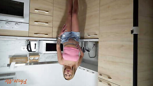 Slutty Blonde In Tank Top, Daisy Dukes And Pantyhose