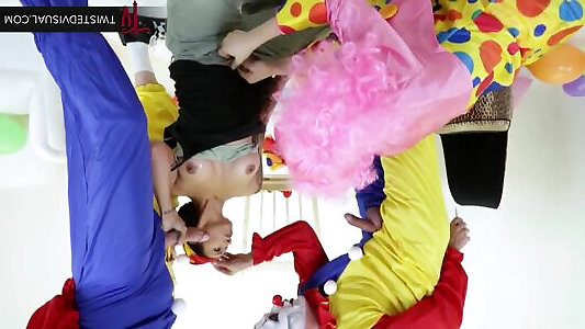 Clowns Trunk-wises Play With a Brunette Chick Ramming Their Beefsticks in Her Holes in a Filthy Cosplay