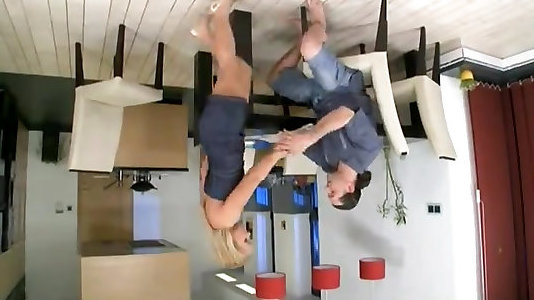 My boyfriend left me trapped on the couch doing yoga and my brother-in-law ends up fucking my virgin tight pussy