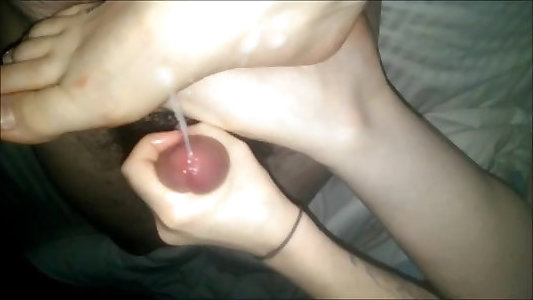 dark-haired qui aime recevoir le sperme sur ses pied