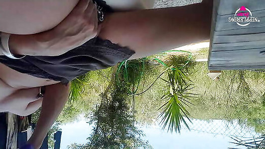 nippleringlover insatiable milf tugging pierced coochie with vibros outdoors until real ejaculation, extraordinary pierced puffies