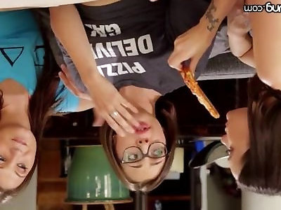 Lesbo Sorority-Sisters Slurp Out with the bdsm fotoshooting Delivery Lady