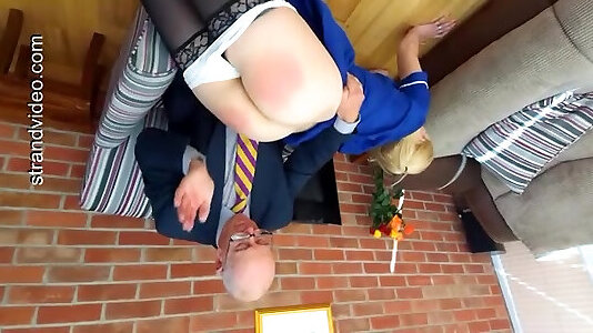 Put on sexy outfit for her daddy and pleased him firstly with the hand and then with the mouth