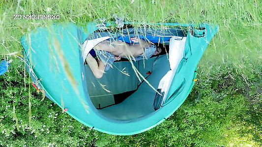 Naked teenager Viks in the tent. Flashing caboose close-up.