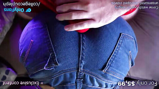 Dry humping DOGGYSTYLE, he lost control and came in his pants, panties assjob