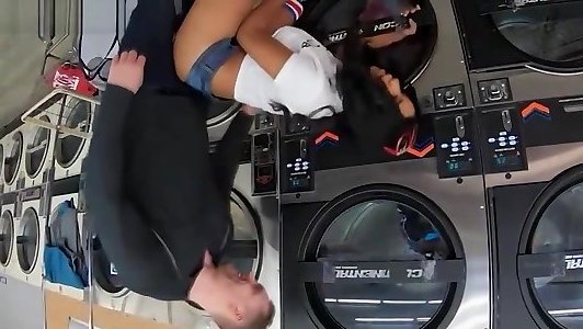 Laundromat cahool sutnt with curvy dark-hued stranger