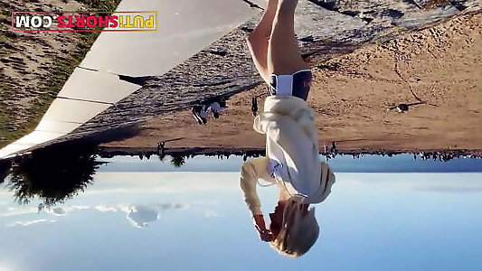 Diminutive Platinum-blonde in Shorts Picked up and Torn Up Stiff in the backside